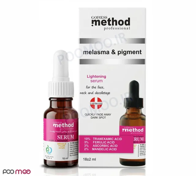 سرم ضدلک قوی متد ، غنی از ترکیبات فعالی مانند ترانگزامیک اسید، ویتامین C و هیالورونیک اسید، برای کاهش لکهها، روشن کردن پوست و آبرسانی عمیق. مناسب برای انواع پوست