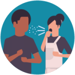 قبل از نزدیک شدن به دیگران و قبل از ورود به مطب پزشک از ماسک صورت استفاده کنید. در صورت عدم امکان استفاده از ماسک به دلیل تنگی نفس یا موارد دیگر باید سرفه ها و عطسه های خود را پوشاند. همچنین، افرادی که به اتاق بیمار وارد می شوند باید از ماسک صورت استفاده کنند.
